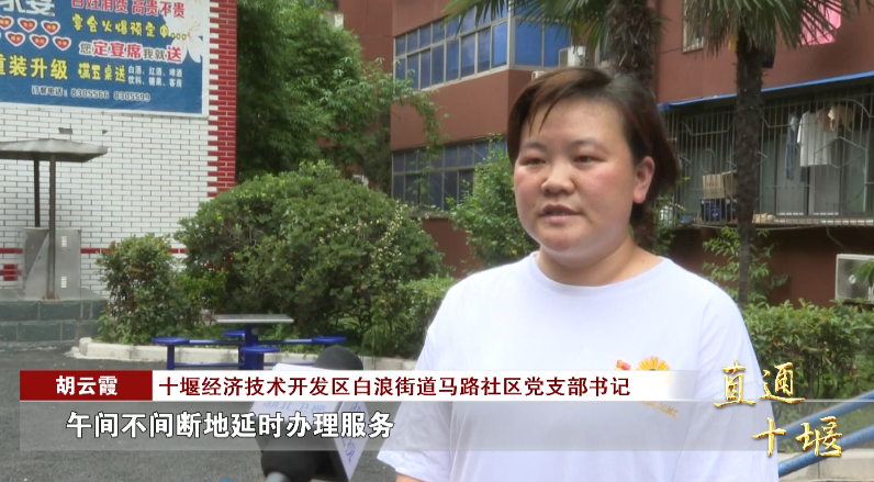 十堰经济技术开发区白浪街道马路社区党支部书记 胡云霞:“构建了‘5+2’‘白+黑’的延时代办工作制度,实行了早晚弹性办,午间不间断地延时办理服务,办理时间是夏季早8点到晚8点,冬季早8点半到晚7点,周六周日正常办公。”