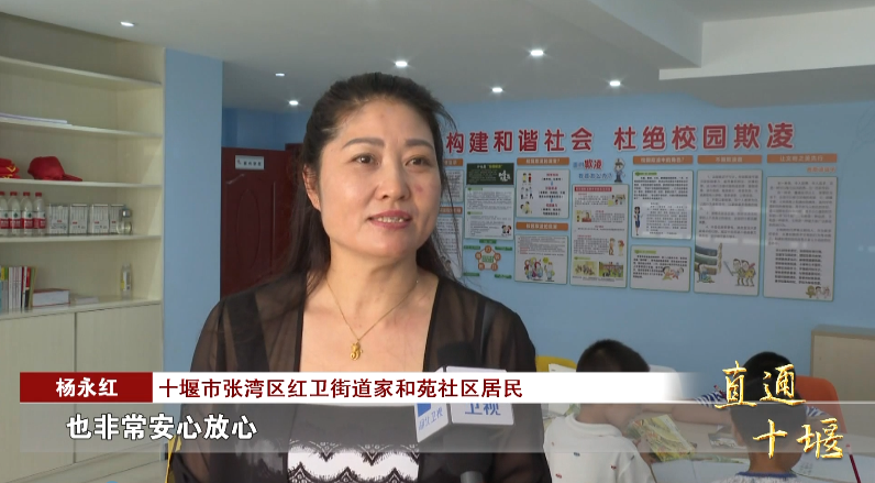 十堰市张湾区红卫街道家和苑社区居民 杨永红:“有了工作站以后,我们孩子放学以后直接来,有志愿者教他们写作业,我们下班以后直接过来接他们,也非常安心放心。”