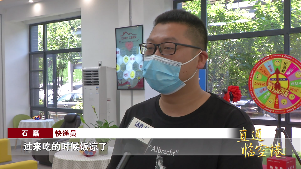 快递员 石磊:“过来吃的时候放凉了,就直接用咱们这边的微波炉热了一下,就感觉跟回到家里面一样。”