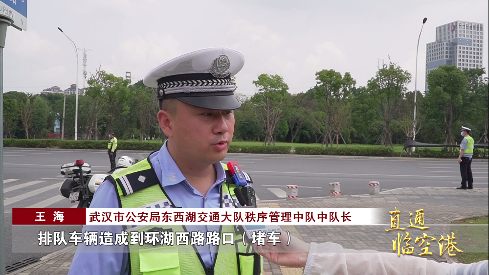 武汉市公安局东西湖交通大队秩序管理中队中队长 王海:“特别是在高峰的时段,排队车辆造成到环湖西路路口(堵车),也存在影响,还有少数驾驶员到环湖西路的路口直接压于白色实线,跟金桥下来直行的车辆发生冲突,也存在一定的隐患。”