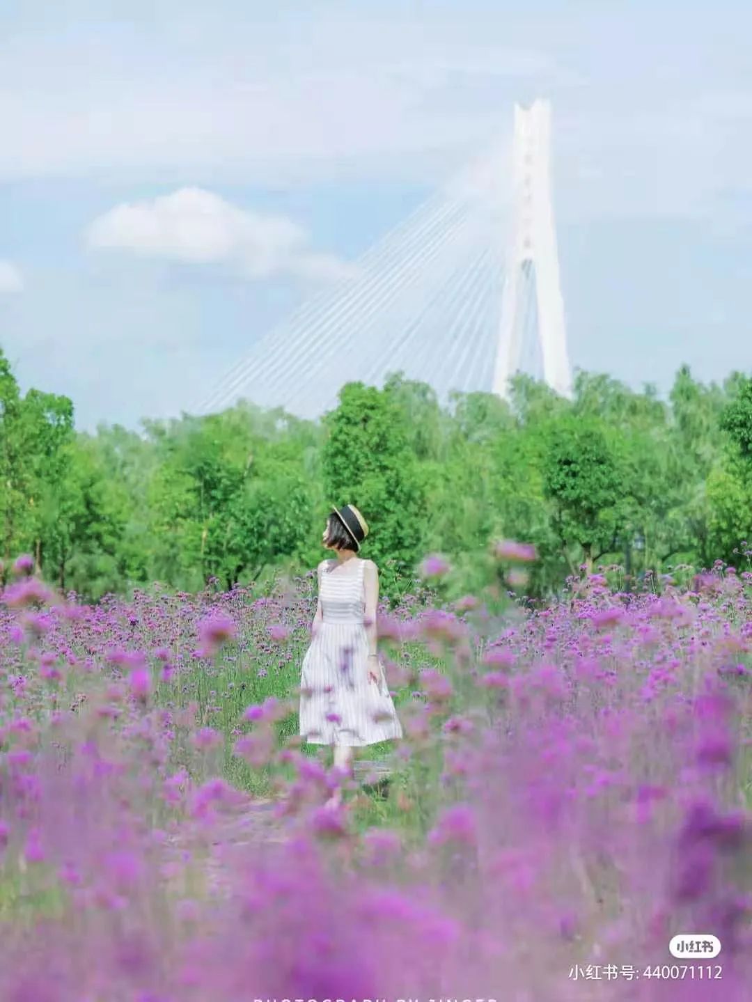 和紫色的花海相映成趣