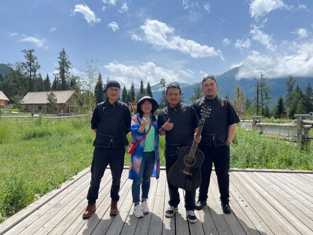 主持人乐乐和奶疙瘩乐队主唱在喀纳斯合影