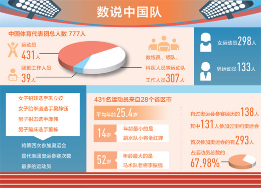 这是中国第十次派团参加夏季奥运会,也是中国体育代表团境外参赛人数最多、规模最大的一次。777人的阵容,自信坚定,从容赴约。面对从未遇到过的挑战,中国队要比出竞技水平,更要展现意志决心和精神面貌。“全力拼搏、为国争光”的誓言嘹亮,激励着代表团全员奋力前行。