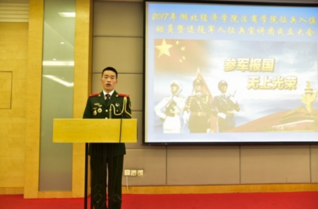 退伍复学学生李方中为法商学子做征兵宣讲