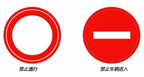 “禁止驶入”对象是机动车,可以驶出但不可驶入;“禁止通行”对象是所有通行者(行人和车辆),均不可通过。虽然在实际中突然看到对于这两个标识很难分辨,但是对于车辆来说,这两个标识都是禁止指令。