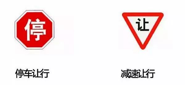 在一些没有交通信号灯或无人看管的交叉路口,会出现以上两种禁令标志。这里,两者都得让主干路的车辆或行人先行,不过“停”和“让”的含义是完全不同的。“停”指的是停车让行,一般是路口视线较差的地方设置,必须停车观察后再通行;而“让”指的是减速让行,通过时必须减速。所以,在这些路段大家一定要多加注意,观察路口处的标识到底是什么。