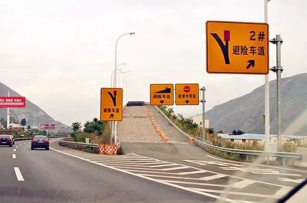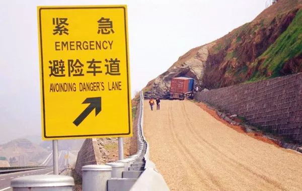 避险车道,指的是在长下坡路段行车道外侧增设的专用车道。在长下坡路段行驶的车辆在刹车失灵或车辆失控时能够安全停车,避免冲出道路或追尾。