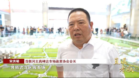 首衡河北高碑店市场蔬菜协会会长 宋洪硕:“我们一直在寻找商机,开拓武汉区域市场,这一次千载难逢的机遇,我们一定不会错过,我们愿意与武汉城市圈商户一道,实现南北市场联动,做大做强全国果蔬供应链。”