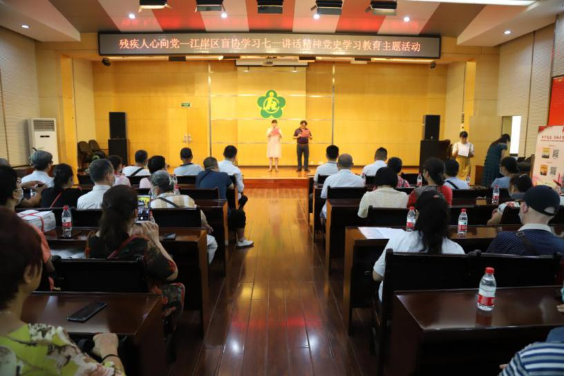7月30号上午,“残疾人心向党——武汉市江岸区盲协学习七一讲话精神党史学习教育主题活动”在武汉市江岸区残联举行。近50名视障人士来到活动现场,学党史、感党恩,表示要继承和发扬党的光荣传统和优良作风,坚定不移跟党走。