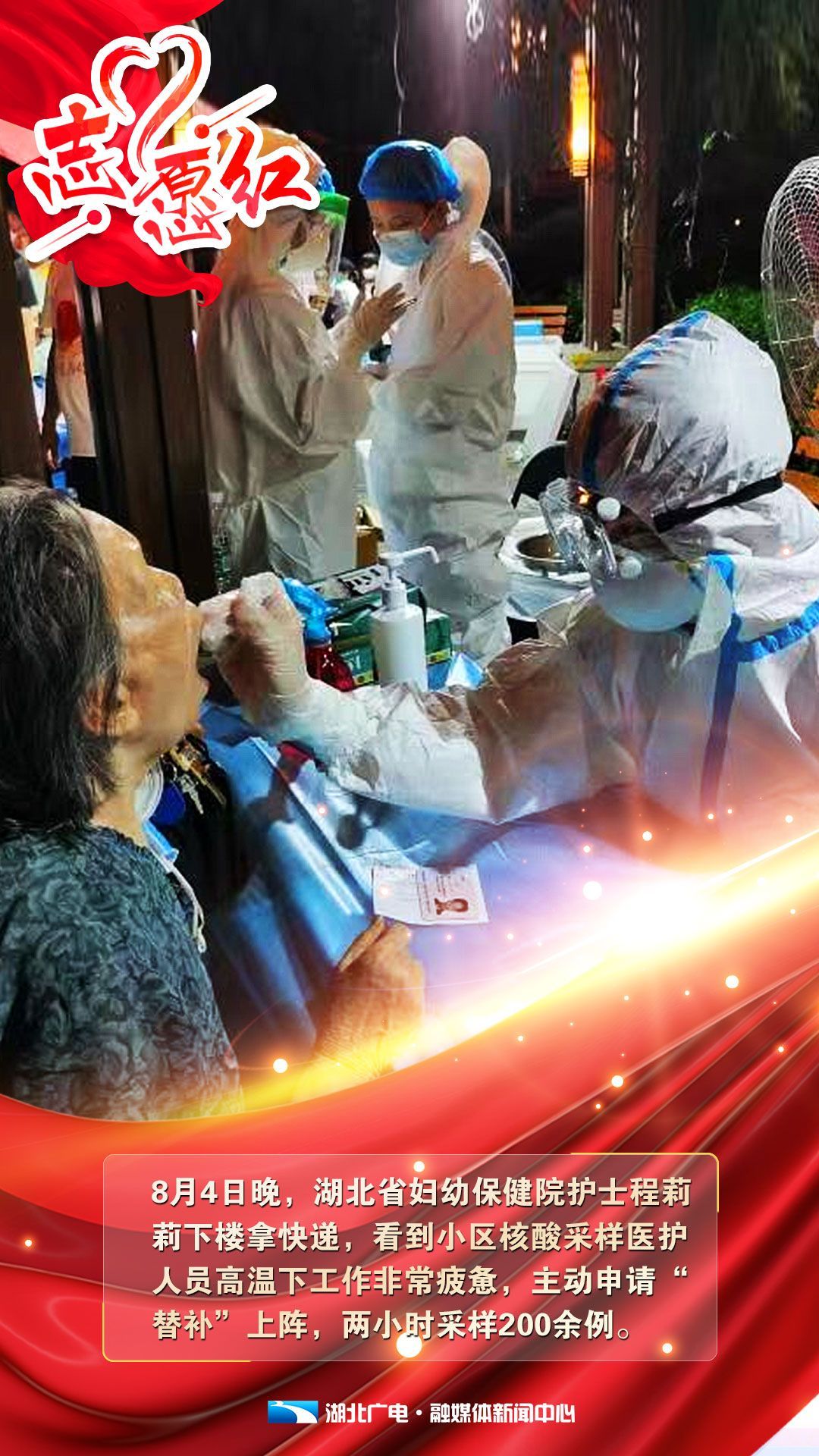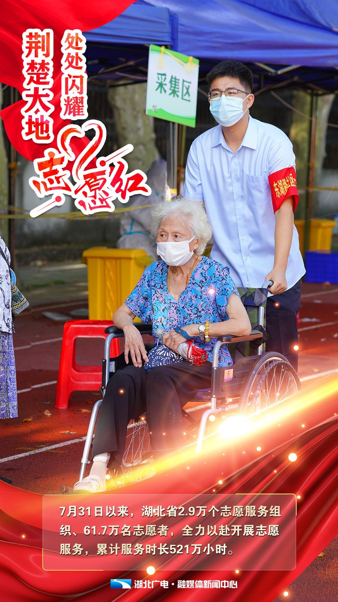 据不完全统计,7月31日以来,湖北省2.9万个志愿服务组织、61.7万名志愿者,围绕密接人员排查、核酸检测保障、重点区域管控、生活物资配送、防疫知识宣传等重点任务,深入社区村组、核酸检测点、封控区域、交通卡口等,全力以赴开展志愿服务,累计服务时长521万小时。