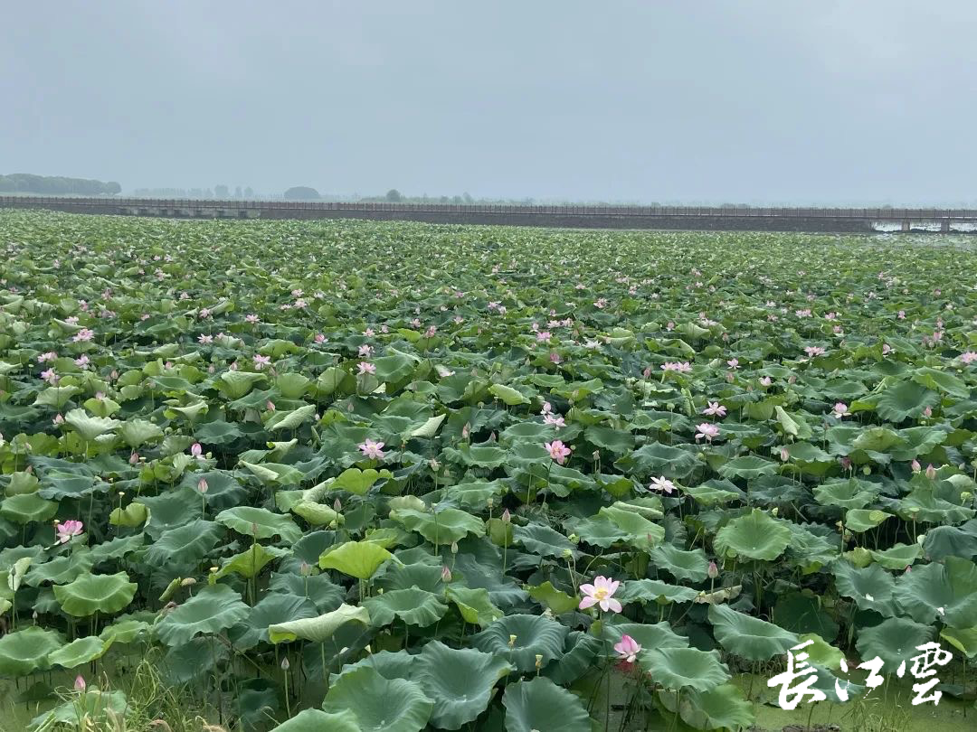 正值盛夏,武汉蔡甸沉湖国际重要湿地满眼绿色,湖水清澈,湖面上荷花随风轻摇,白鹭成群戏水,一幅生机蓬勃的自然风光生态画卷徐徐展开。