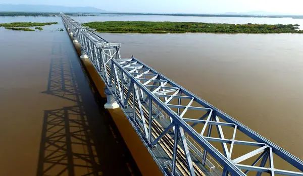 新建同江中俄黑龙江铁路大桥位于中国黑龙江省同江市与俄罗斯下列宁斯阔耶市之间,桥梁全长7194米,引桥长4979米,主桥长2215米,其中中方境内主桥长1886米,俄方境内主桥长329米,设计运营时速100公里、年过货能力2100万吨。大桥工程2014年2月开工,2018年10月中方段主体工程完成,2019年7月中方段完成静态验收、动态验收、初步验收和安全评估等全部验收程序。