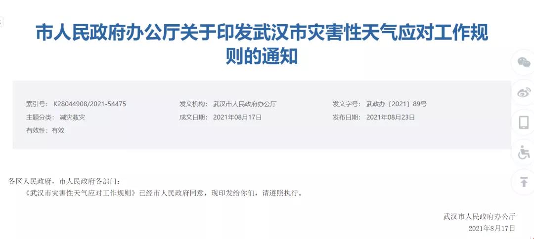 8月23日,《武汉市灾害性天气应对工作规则》在武汉市政府官网公布。武汉市规定,大风、雷电等黄色预警期间,施工单位要停止塔吊、脚手架、玻璃幕墙清洗等高空户外危险作业。