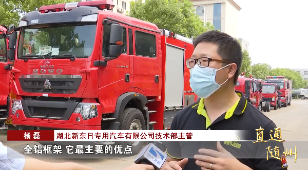 湖北新东日专用汽车有限公司技术部主管 杨磊:“全铝框架 它最主要的优点,一个是轻量化,第二个就是它具有很好的防腐性能,就是不生锈,它在射程方面、流量方面,也具有一个很大的优势,价值都在100万以上。”