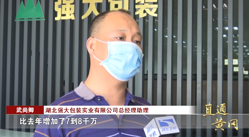 湖北强大包装实业有限公司总经理助理 武尚卿:“1到6月份我们今年实现了收入1.9亿元,比去年增加了7到8千万,从纳税情况来看,今年1到6月份交税是680多万,去年是600万多一点点。”