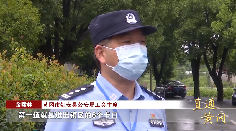 黄冈市红安县公安局工会主席 金啸林:“第一道就是进出镇区的6个卡口,第二道是镇区范围内的47个卡口,第三个是在镇区外围设立三公里长的防控线,进行六段值守。”