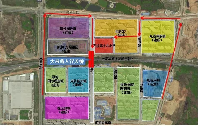 天桥改建完成前,关豹高速以南小区居民过街需绕行光谷三路或光谷四路。
