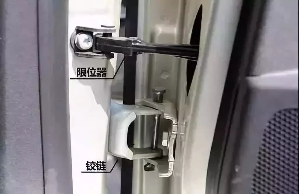 车门和车身通过铰链和限位器连接在一起,前者是固定作用,后者限制车门的打开角度。如果它们损坏了,可能你的车以后都关不紧门,呼呼漏风;或者是一开门,门就来个大劈叉,往外拐。