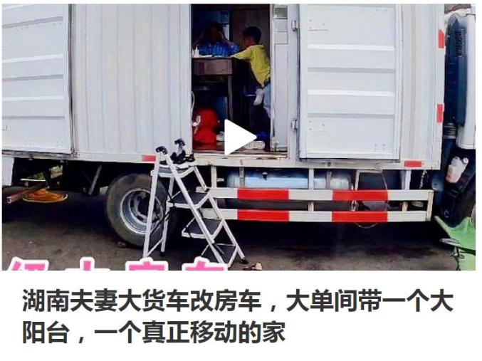 日前,一条《湖南夫妻大货车改房车,大单间带一个大阳台,一个真正移动的家》的网络视频引起了交警部门的注意。视频显示,一名长沙车主将自己的箱式货车改造成了房车,并带着家人驾车外出旅游。