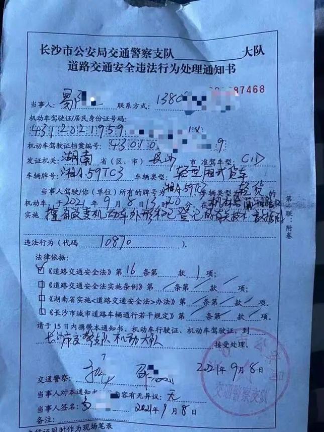 9月8日,长沙交警机动大队将根据调查结果,对易某某因违反《机动车登记规定》相关规定,擅自改变机动车外形和已登记的有关技术数据的,责令恢复原状,并处五百元以下罚款,在整改未到位前,不得上道路行驶。