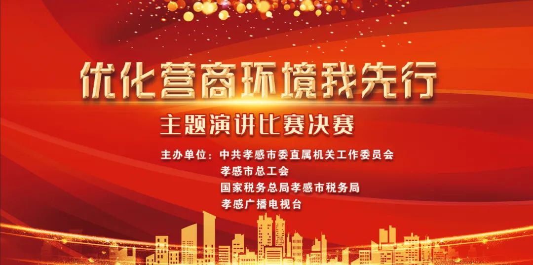 为深入贯彻市委、市政府优化营商环境工作部署,激励广大干部职工转变服务理念、创新服务方式、提高服务水平,营造“人人都是营商环境”的浓厚氛围,助推孝感打造“武汉城市圈副中心”,市委直属机关工委、市总工会、国家税务总局孝感市税务局、孝感广播电视台联合开展市直机关干部职工“优化营商环境我先行”主题演讲比赛。经过前期的层层推荐、选拔,共有15位优秀选手进入决赛。决赛有关事项通知如下: