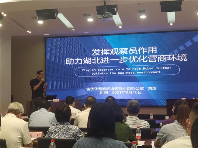 杜海洋在致辞中说,省委、省政府主要领导对营商环境建设高度重视,省委、省政府今年开年的第一个大会就是营商环境建设大会,9月7日省政府又召开了全省优化营商环境推进会议,始终把营商环境建设摆在全省高质量发展的突出位置来对待来推动。在全省上下共同努力下,我省营商环境持续优化,取得阶段性成果。如武汉市连续两年在全国评价中被列为标杆城市;襄阳深化商事制度改革和宜昌市“六多合一”改革受到国务院通报表扬;全省网上政务服务主题事项数位列全国第4名,进入全国第一方阵等等。但比起发达地区我省营商环境还存在一定差距,为此,省营商环境办(省发改委)已拟定百日攻坚计划,扎实推进整改,后续是否整改到位,以及是否存在新问题等,欢迎各位观察员监督并提出意见建议。