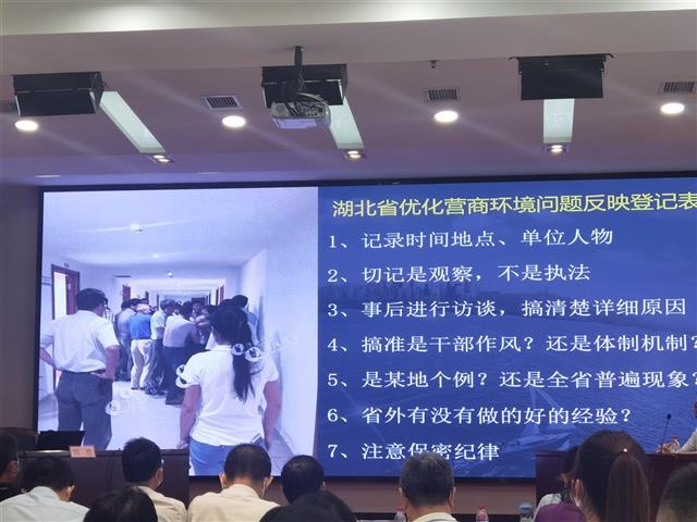 省营商环境办干部刘浩以《发挥观察员作用 助力湖北进一步优化营商环境》为题,结合不少案例,重点从实操角度讲了营商环境的评价指标,我省营商环境的主要堵点、难点,以及观察员如何反映职责范围内的营商环境问题等,针对性、指导性强。