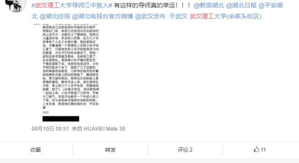 “我觉得小伙子情况更危急,于是赶紧跳下去……”近日,武汉理工大学智能交通系统研究中心张存保教授跳入长江急流中奋勇救人的事迹受到该校师生的点赞。