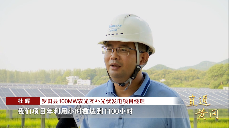罗田县100MW农光互补光伏发电项目经理 杜辉:“罗田是山区县,光照充足。我们项目年利用小时数达到1100小时,在湖北省同类项目中居于前列,经济效益较高。”