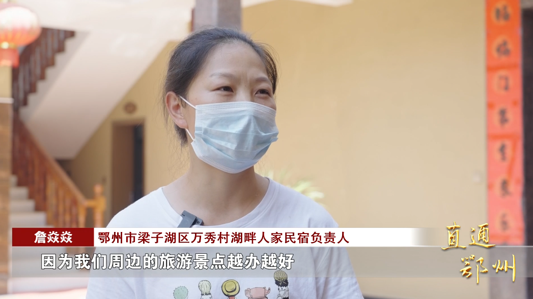 鄂州市梁子湖区万秀村湖畔人家民宿负责人 詹焱焱:“我们周边的旅游景点越办越好,很多自驾游的游客从武汉啊,(甚至)更远的地方来游玩,我这边刚好有老房子。”