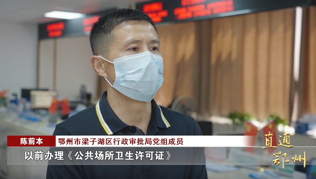 鄂州市梁子湖区行政审批局党组成员 陈前本:“原先办理《公共场所卫生许可证》,需要卫生健康部门上门勘察,需要四五天的时间,后来经过我们与卫健部门共同协商,将事前审批变为事中事后监管,由办事主体现场向卫生健康部门,出具公共场所卫生承诺书。”