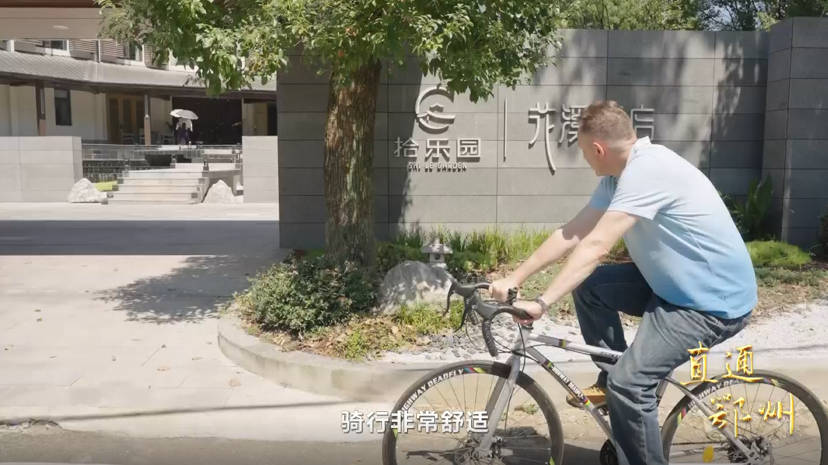 在汉法语外教 弗雷德:“骑行非常舒适,这边的风景非常的美丽宜人。”