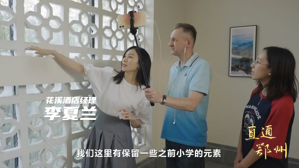 花溪酒店经理 李夏兰:“你好,欢迎欢迎!欢迎来到我们酒店!这个酒店是由一个废弃的小学改造而成的,我们这里有保留一些小学的元素,包括楼梯、窗花这些。”