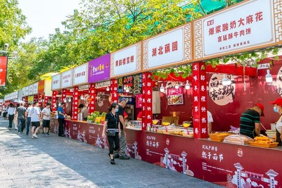 户部巷内,大舞台上劲歌热舞活跃现场氛围,引得游客纷纷叫好;青年游客携“户部通宝”身穿汉服巡游,投壶和“三转九拌”大转盘前排起长队;民主路上的特色展销区人声鼎沸,蔡明纬、常青麦香园、石太婆等热干面店铺热气腾腾,花式营销活动抓人眼球。