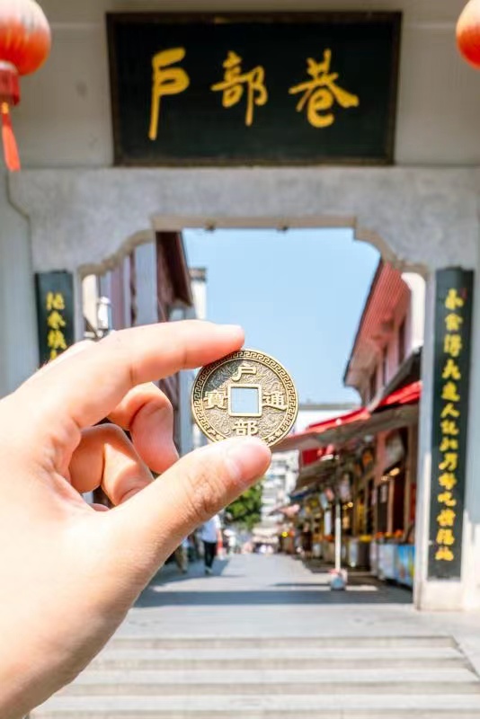 “我是一位汉服爱好者,看到有汉服巡游活动特地来玩儿,这里太热闹了!”游客咨询处,前来游玩的陈女士开心地说:“我投壶水平还不错,赢了两枚通宝,这个通宝做得很精致,我要把其中一个留下来作纪念!”据了解,“户部通宝”是户部巷商会特别推出的文创产品,每枚可抵扣5元现金,游客可以通过现场活动赢取。