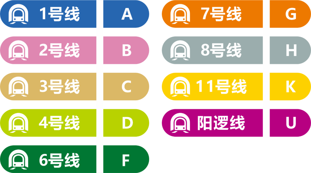 编号里的英文字母为线路号例如A代表1号线、B代表2号线C代表3号线......以此类推