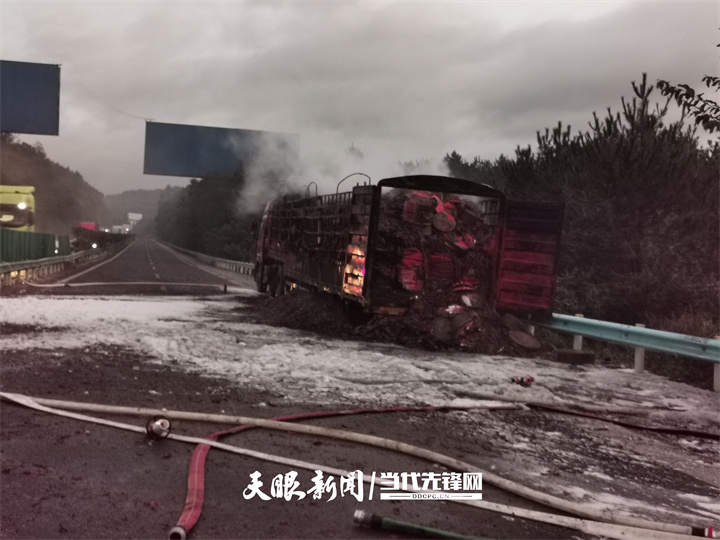 9月23日,一辆装载约27吨爆竹产品的运输车从江西驶往贵州织金,当车行驶至贵新高速龙里段时,轮胎突然着火。龙里县获悉后迅速开展应急处突工作,避免了一起人员伤亡事件发生。