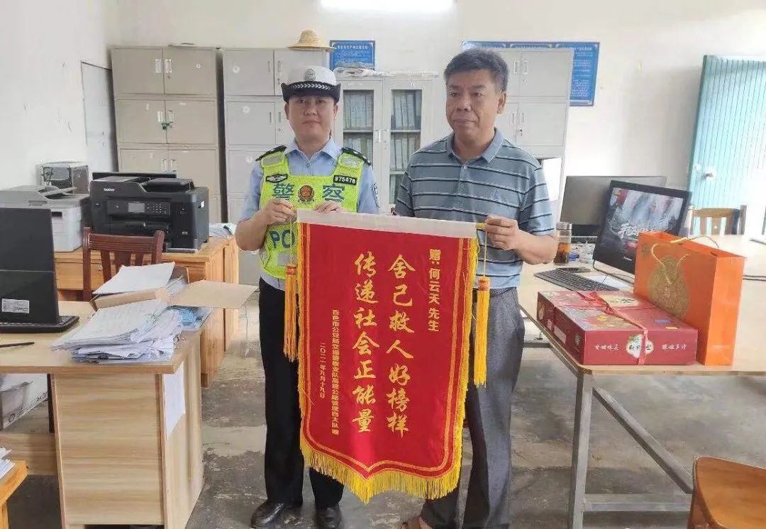 百色交警高速公路四大队民警几经辗转,于9月22日找到了这名好心人,并给他送上锦旗。