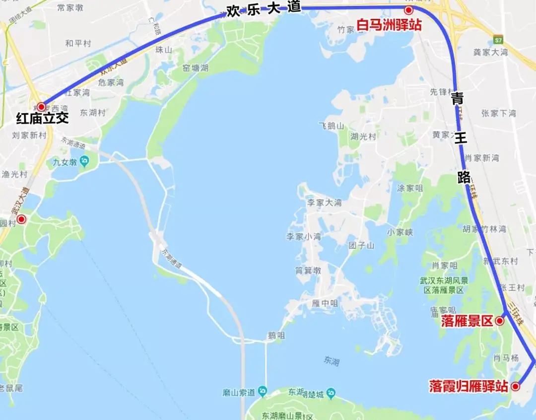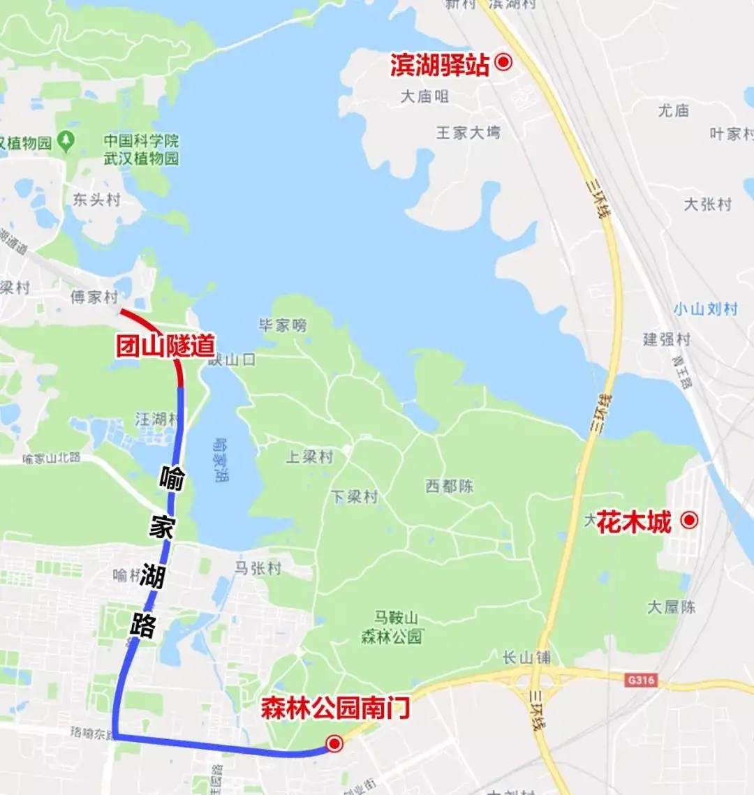 二、从磨山进入绿道的车辆遇到拥堵时,可以通过团山隧道绕行喻家湖路、珞瑜东路上三环线、 花城大道出口到达落雁景区进入绿道。