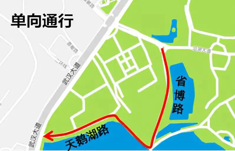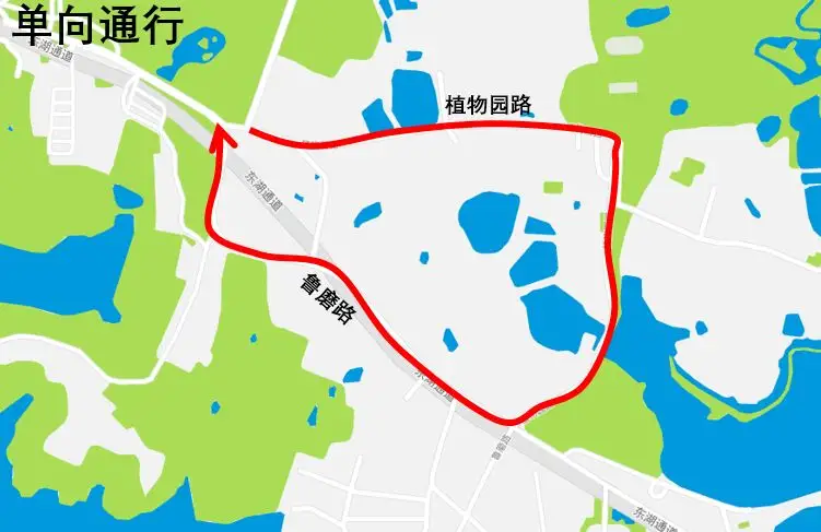 (二)10月1日至7日,每日 9:00-18:00,东湖磨山区域(鲁磨路团山路路口→东湖通道鲁磨路地面层→东湖通道管理中心→鲁磨路植物园路路口→中科院武汉植物园→植物园路团山路路口方向)实施机动车单向通行。
