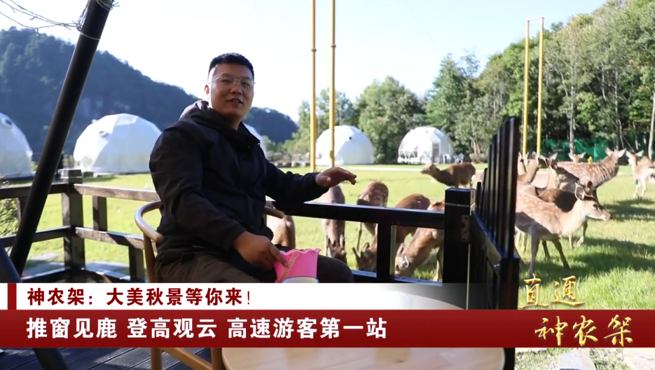记者 王戎:“在神农架的天燕景区,这里有非常美丽的生态环境,而且走在这样的地方,旁边就可以看到一群非常可爱的梅花鹿,和它们来一场亲密的约会吧。”