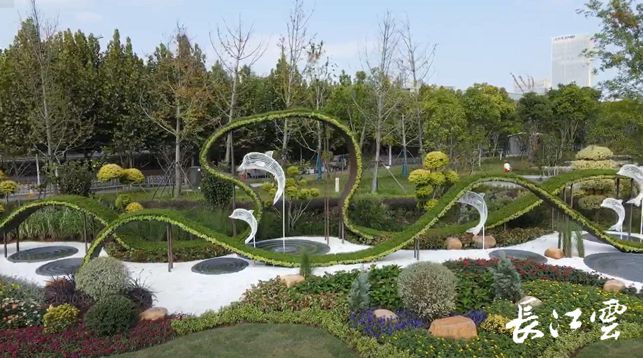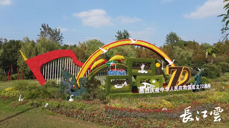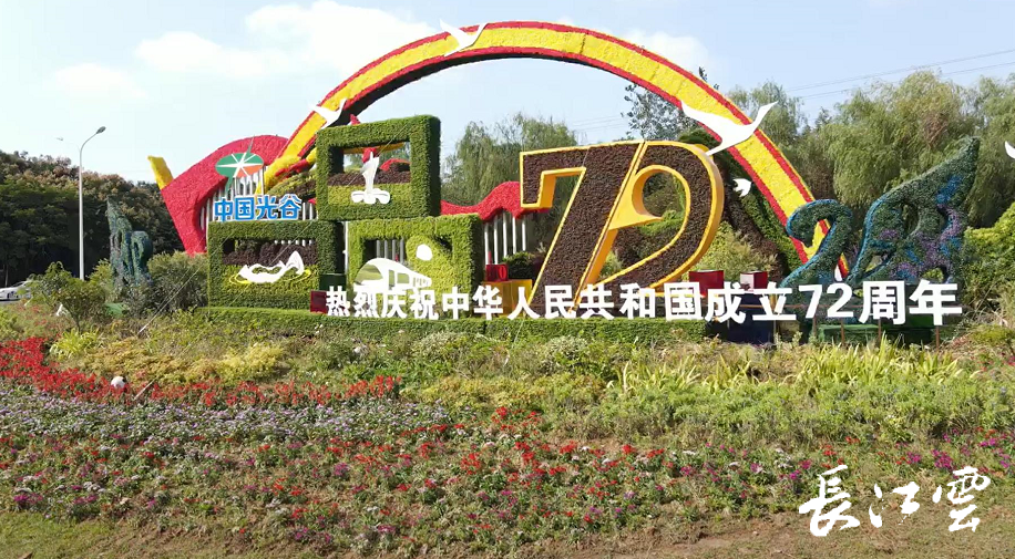 国庆节,武汉东湖高新区一大波鲜花盆景亮相,组成一幅“光谷画卷”,成为打卡新景点。