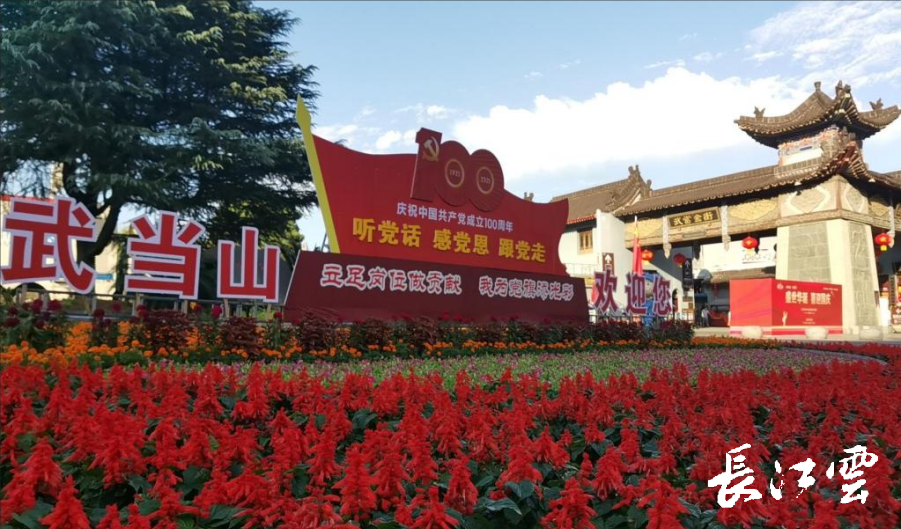 国庆节期间,十堰市武当山景区一面面红旗迎风招展,一盏盏灯笼喜庆红火,精心布置多彩的花卉、绿植绚丽多姿,在蓝天、白云映衬下,形成了一道靓丽的风景线,也让市民和游客们感受到了浓厚的节日氛围。