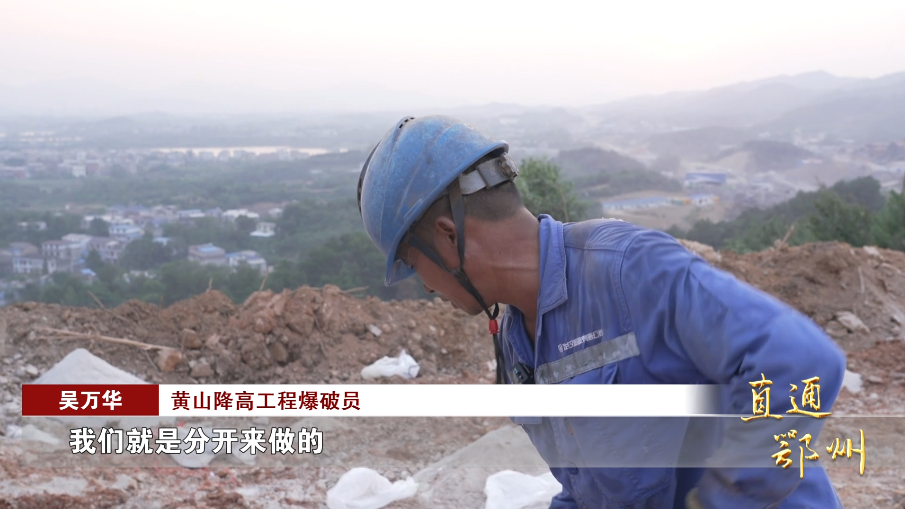 黄山降高工程爆破员 吴万华:“今天就是点多了。我们就是分开来做的,要不然这样你是做不完的。”