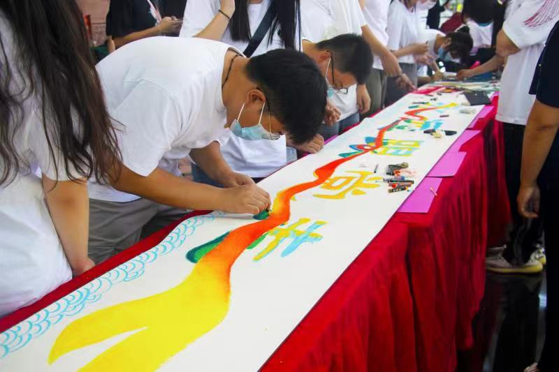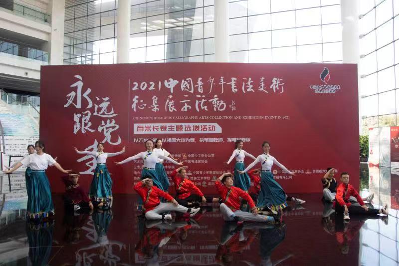 10月1日是国庆日,下午2:30,由共青团中央宣传部、全国少工委办公室主办的 “永远跟党走”2021年中国青少年书法美术征集展示活动——百米长卷主题选拔第二站在武汉琴台大剧院举行,武汉工商学院艺术与设计学院和校团委组织19名学生现场绘制了“永远跟党走”主题画卷,向建国72周年和建党100周年献礼。