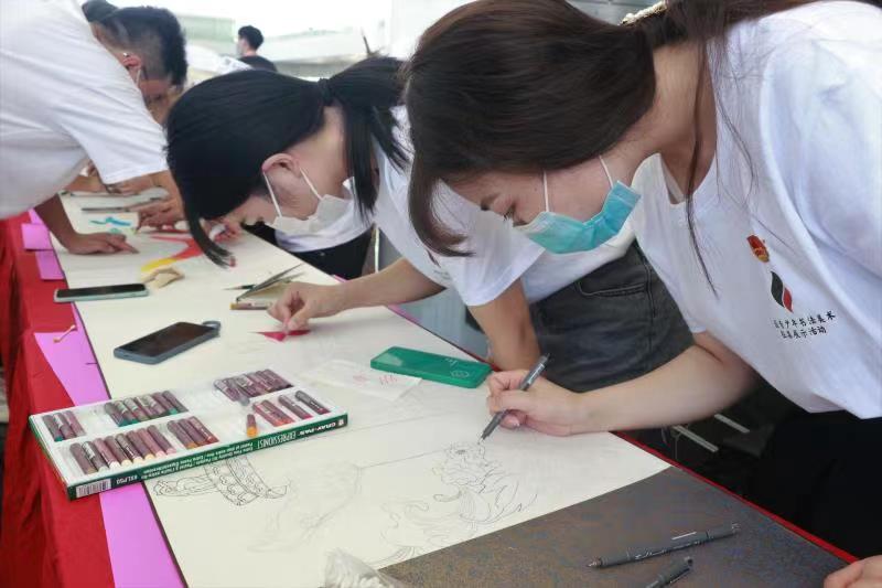 中国青少年新媒体协会副秘书长王挺在现场观看了武汉工商学院学生创作的过程,对他们的作品赞不绝口,“画得不错,很有特色”。