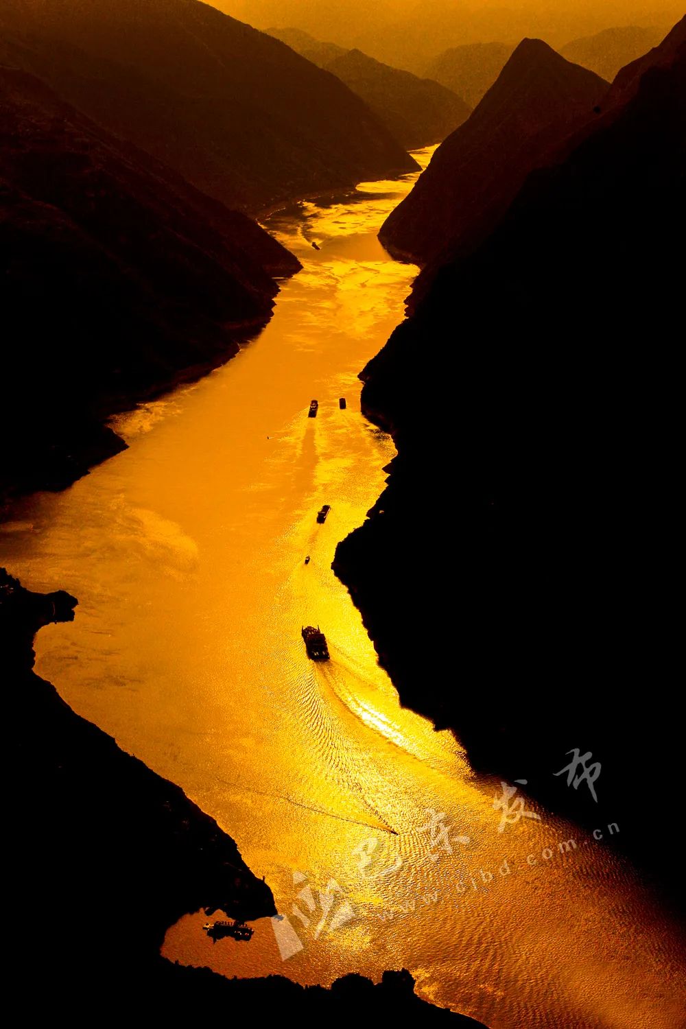 如果机缘正好,你还可以逢见“江峡流金”一景,那是巫峡最美的时刻。夕阳把巫峡染成满江金色,江面上就仿佛盖上了一层绒绒的棉缎。