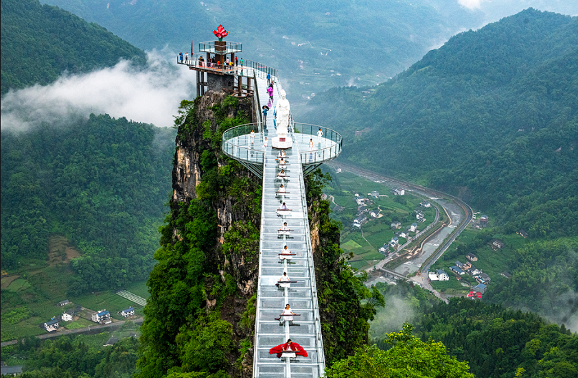 飞云度是一座横亘燕子垭壑口上空的全钢结构的观景桥,钢桥悬空高、跨度大,架在山巅,是亚洲海拔最高的景观桥。走上一次终身难忘。