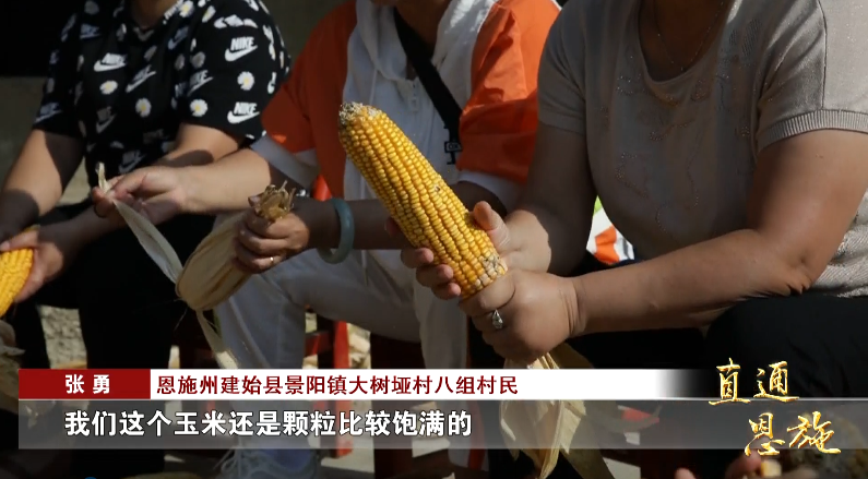 恩施州建始县景阳镇大树垭村八组村民 张勇:“今年我们这个玉米啊,虽然说受到了一点点雨水的影响,但是总体来说还是可以的。大家可以看啊,我们这个玉米还是颗粒比较饱满的。”