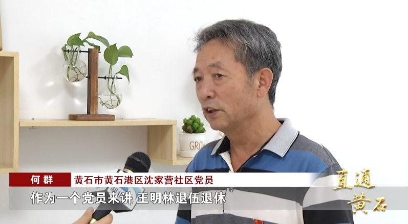 黄石市黄石港区沈家营社区党员 何群:“作为一个党员来讲,王明林退伍退休,都没有褪掉他作为党员的本色,他就是典型的模范、榜样。”